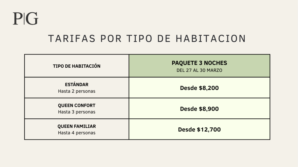 📅 Salida: Lunes 30 de marzo – 2:00 pm Late checkout